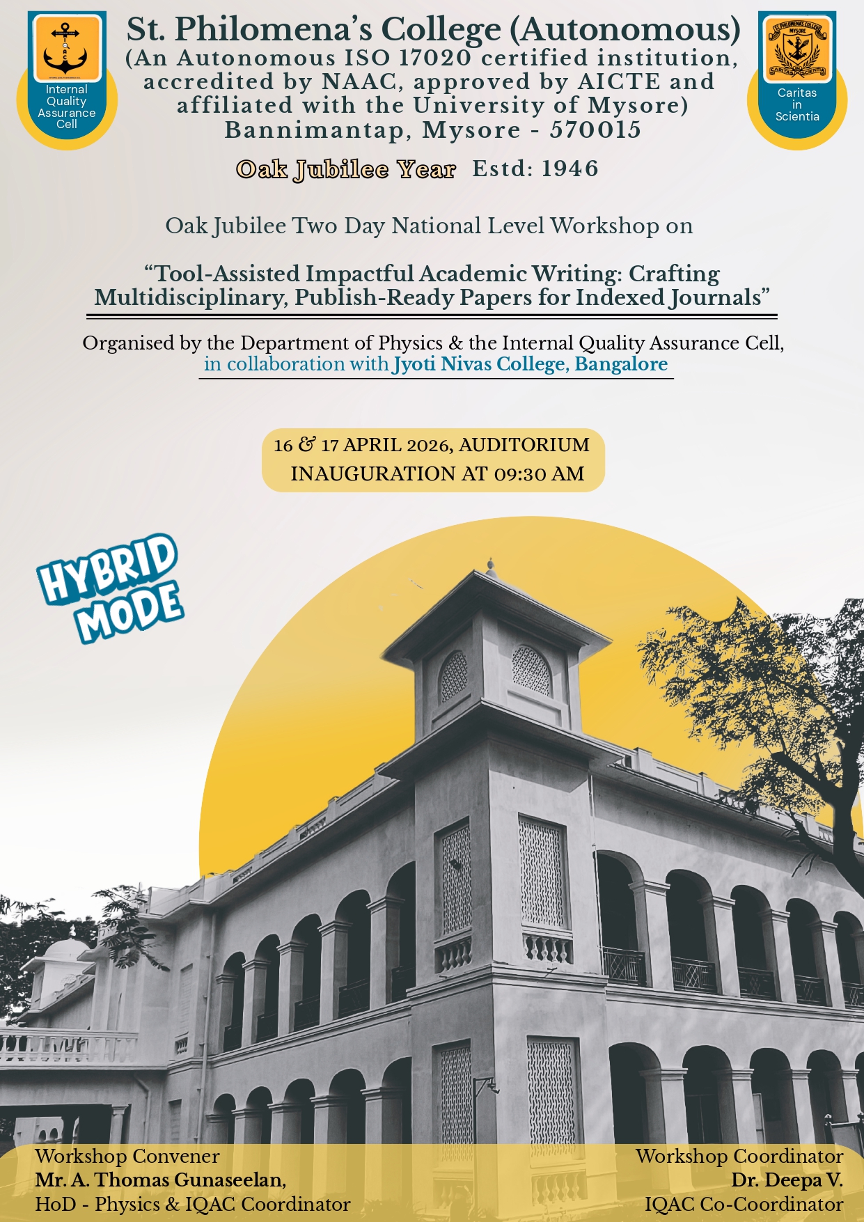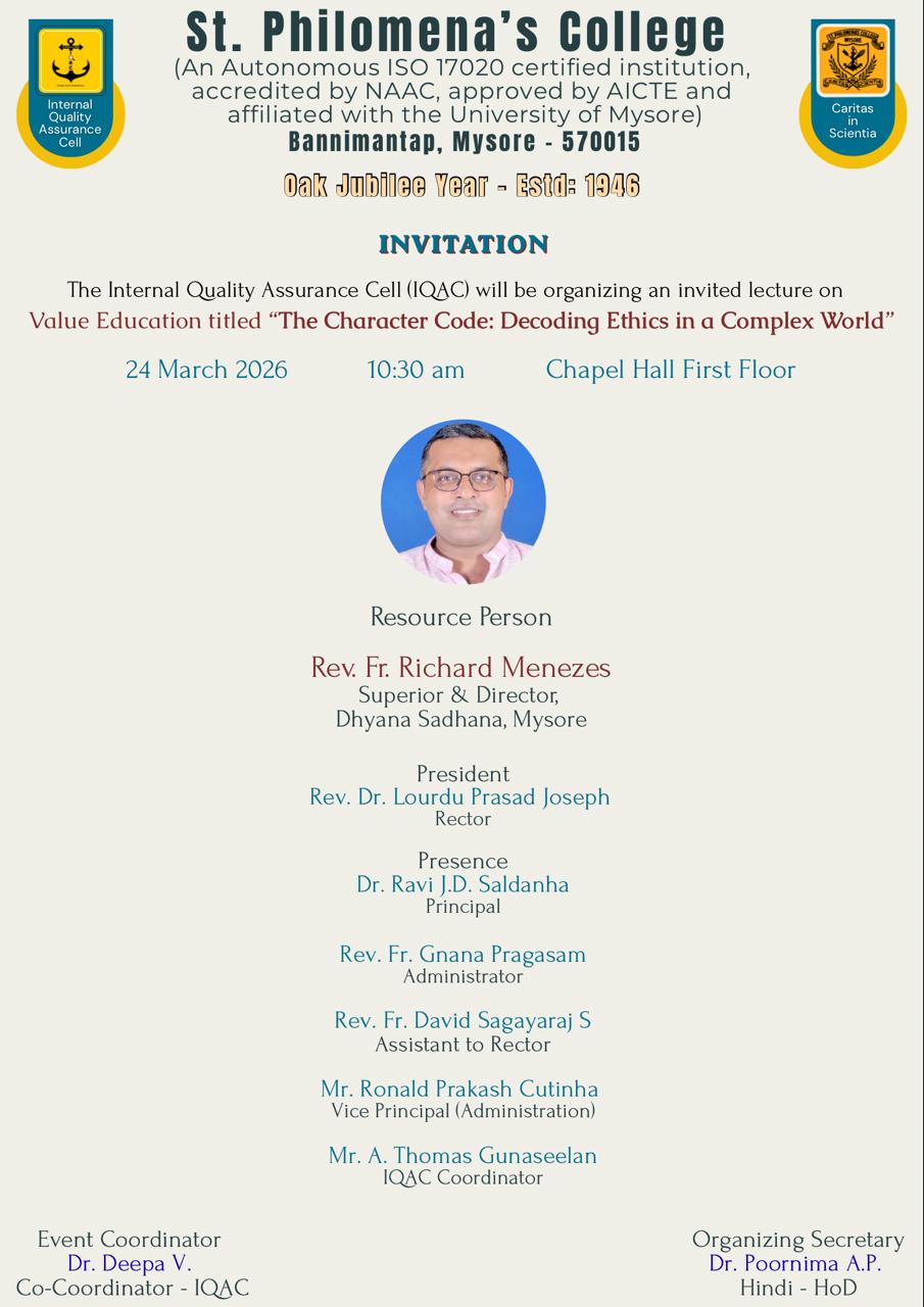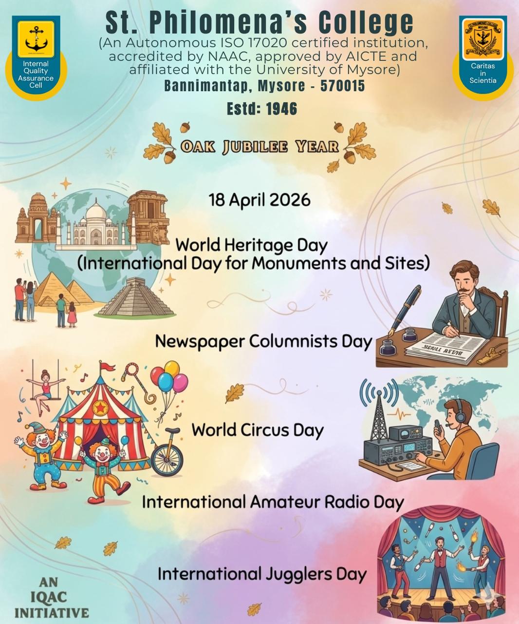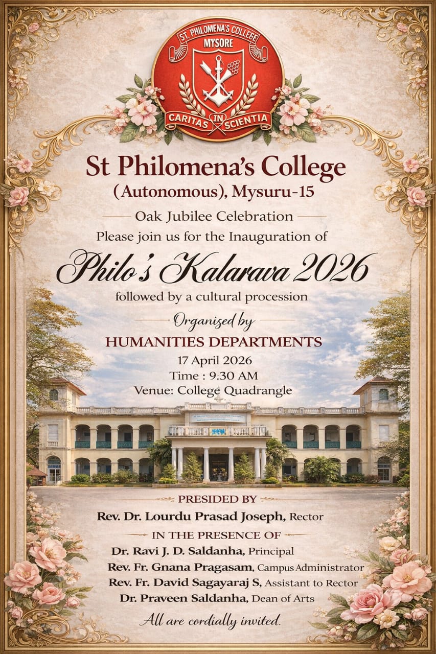 Established on October 9, 1946, St. Philomena’s College is the result of a Bishop’s vision and a Maharaja’s generosity. Rt. Rev. Dr. Rene Feuga, the first Bishop of Mysore, vacated his mansion to host the college’s first classes, supported by the benevolent Wodeyars, the Royal Family of Mysore.