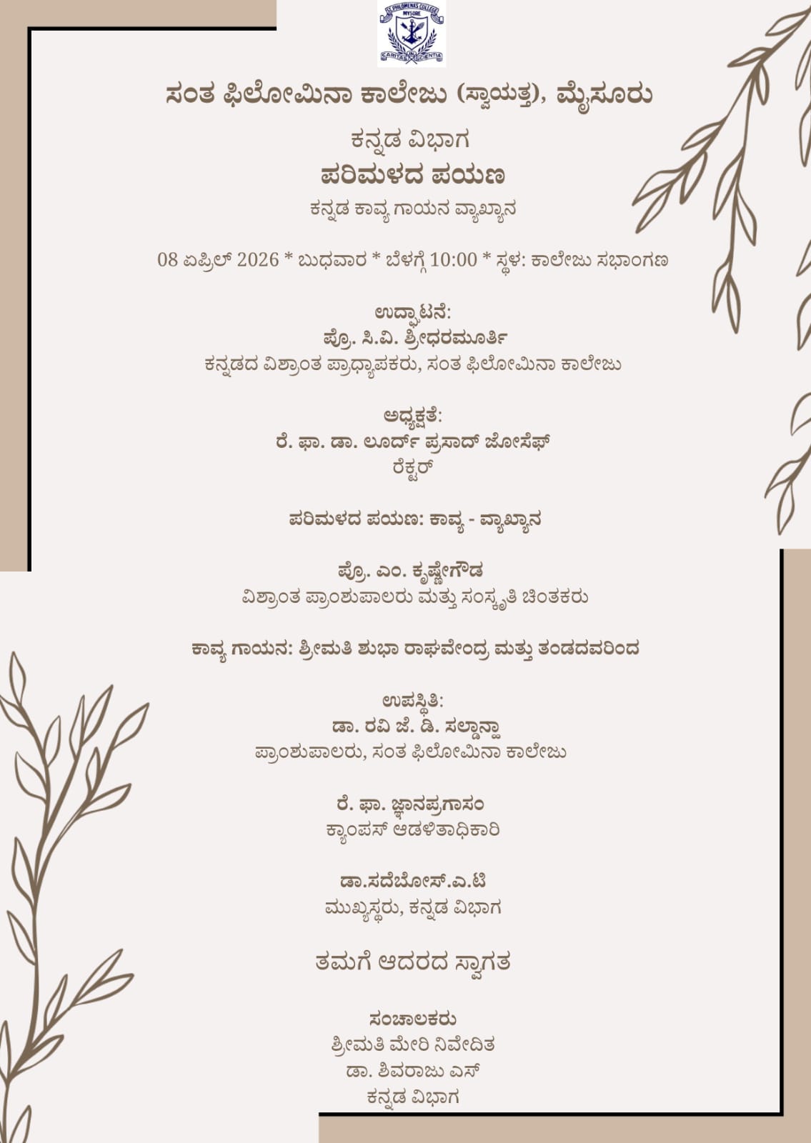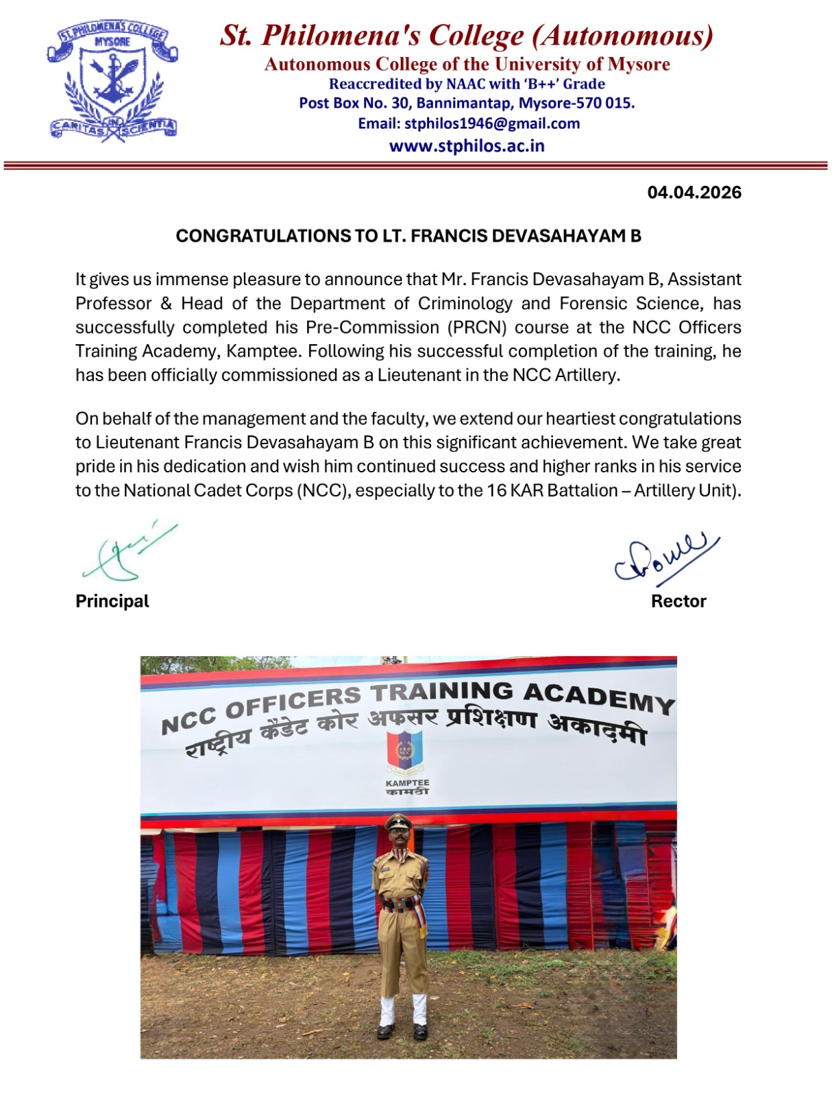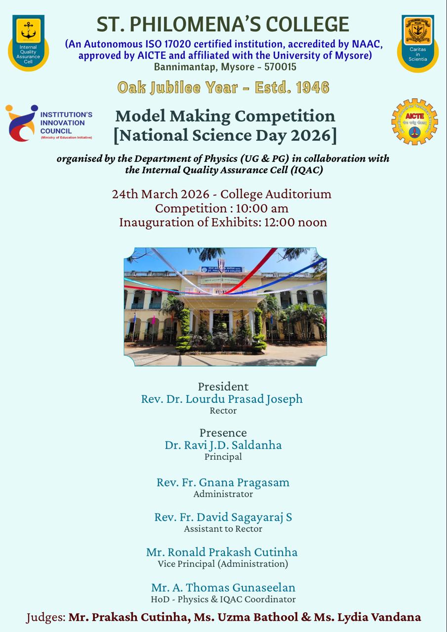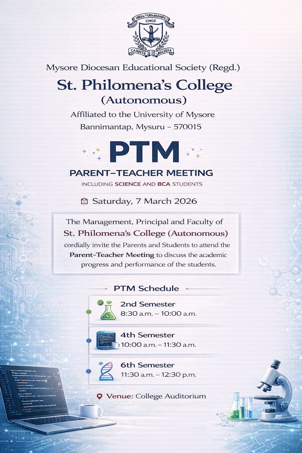 Established on October 9, 1946, St. Philomena’s College is the result of a Bishop’s vision and a Maharaja’s generosity. Rt. Rev. Dr. Rene Feuga, the first Bishop of Mysore, vacated his mansion to host the college’s first classes, supported by the benevolent Wodeyars, the Royal Family of Mysore.