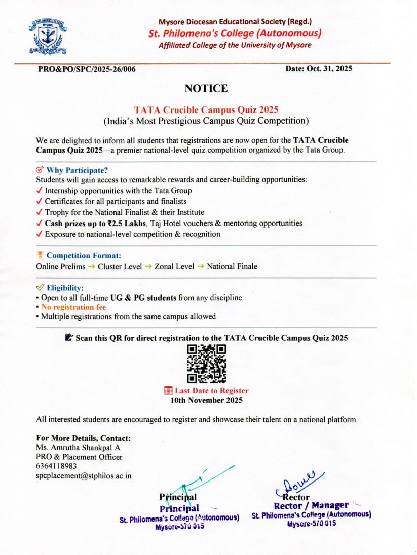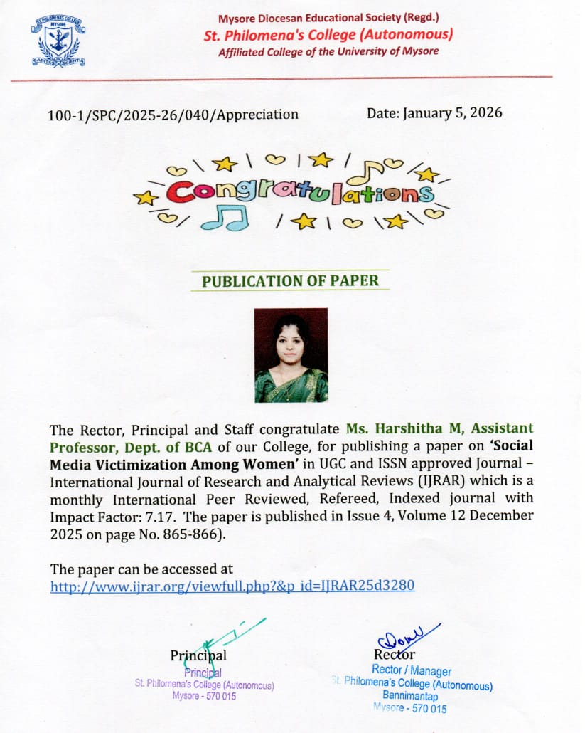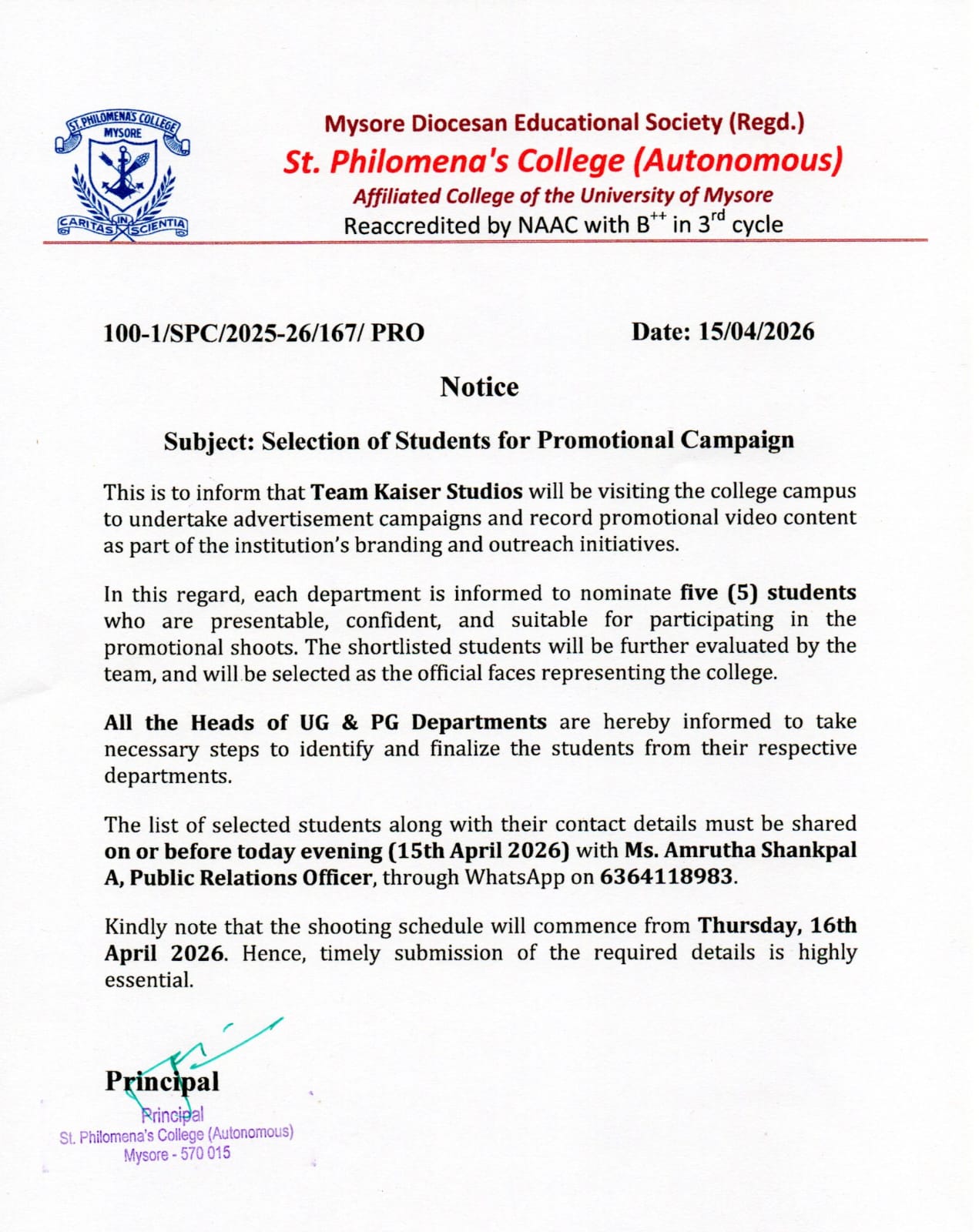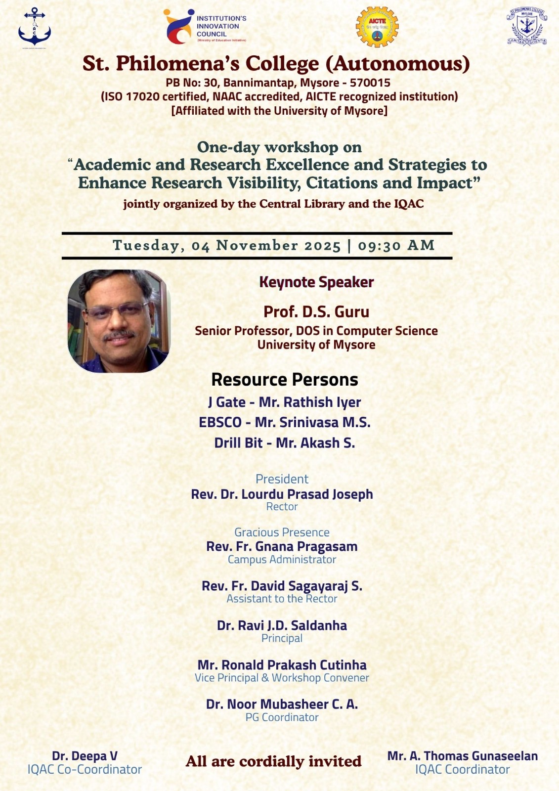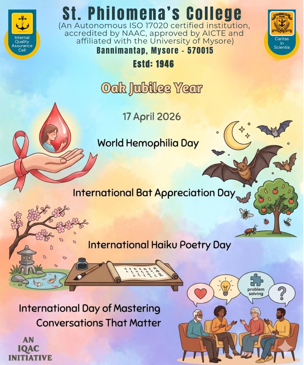 Established on October 9, 1946, St. Philomena’s College is the result of a Bishop’s vision and a Maharaja’s generosity. Rt. Rev. Dr. Rene Feuga, the first Bishop of Mysore, vacated his mansion to host the college’s first classes, supported by the benevolent Wodeyars, the Royal Family of Mysore.