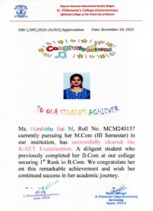 The students have enormous opportunities for participation in a variety of college activities besides contributing to the unique st. Philomena’s culture with value education programmed and opportunities to prepare for NET, CAT,GMAT as well as central and state civil service exam.