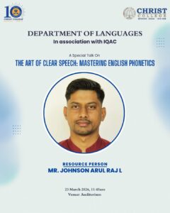 The Department of English aims to develop students’ literary appreciation through a well-balanced selection of classical, modern, and experimental texts. Practical criticism, comparative studies, and student presentations help enhance critical thinking. TED Talks and video lectures are also used to promote engaging discussions.