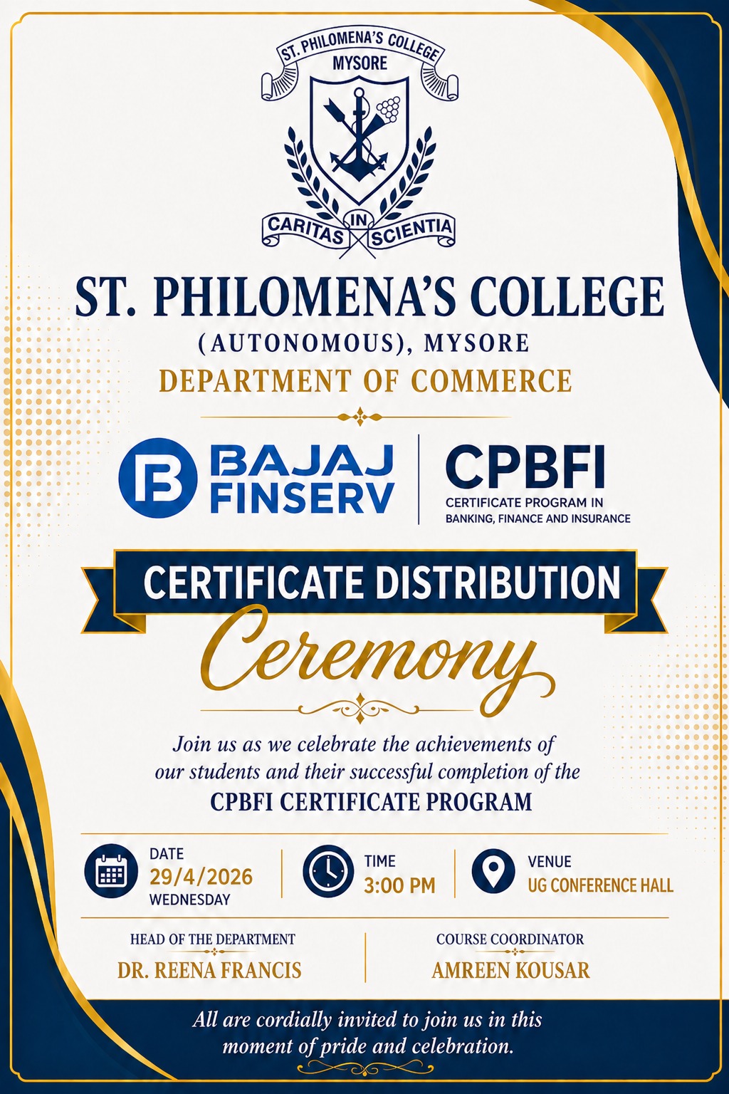 Bajaj FinServ certificate Distribution Ceremony Posted by Mirium Categories B.COM, Events, Events, Events Date April 29, 2026 Share: Mirium Previous post Workers memorial Day April 29, 2026 Next post International Dance Day April 29, 2026 You may also like International Dance Day April 29, 2026 Workers memorial Day April 28, 2026 Graduation Day 2026 April 24, 2026