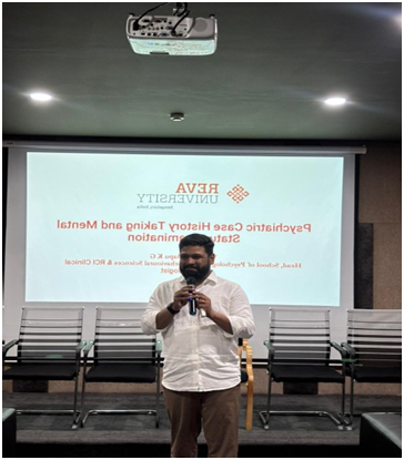 The session was highlyinteractive, with students actively engaging in discussions and clarifying doubtsuntil the lunch break. After lunch, the workshop shifted to Mental StatusExamination, where the facilitator highlighted the importance of observingappearance, body language, affect, speech, thought processes, insight, andjudgment. To make the concepts more realistic, he demonstrated how clients withdifferent psychopathologies may behave, helping students better understandclinical presentation. The workshop offered several key takeaways, including thesignificance of clear and empathetic questioning, the value of structureddocumentation, the role of observational skills in assessment, and the need forsensitivity while interacting with clients. The programme concluded at 5pm with a vote ofthanks by Sivani, and the students shared positive feedback about the workshop.