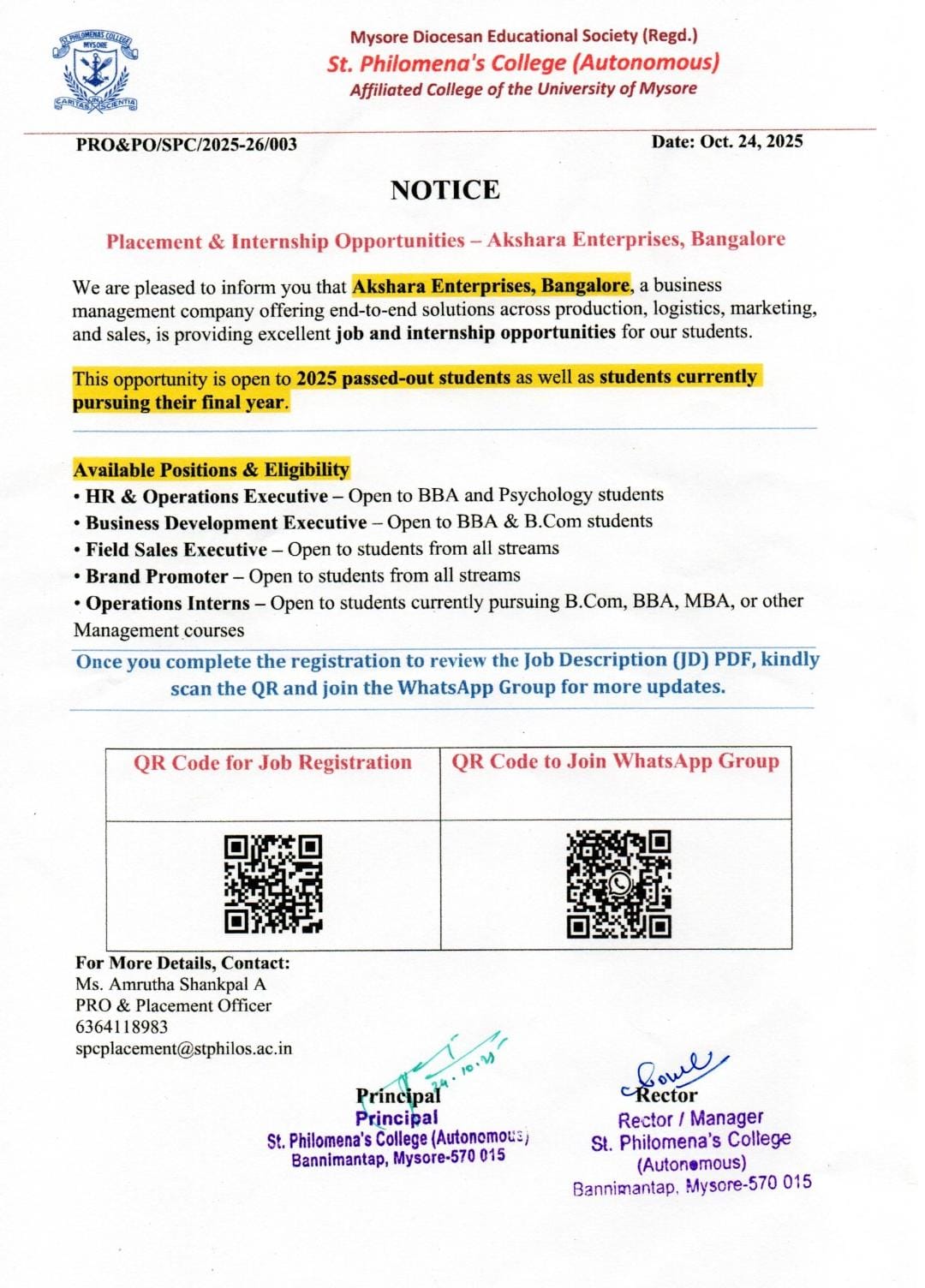 ST. PHILOMENA’S COLLEGE (AUTONOMOUS), MYSURU🎓 Equal Opportunity Cell (EOC) organizing, ✍️ Essay CompetitionTheme: “Equality and Constitution” / “ಸಮಾನತೆ ಮತ್ತು ಸಂವಿಧಾನ” Eligibility: Open to both UG & PG students of all departments. Participants can write in English or Kannada. 40 minutes …