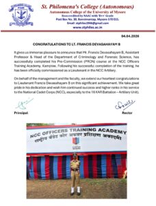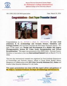 The Department of Criminology and Forensic Science is relatively a new department, established recently from the academic year 2014 presently headed by Mr. B. Francis Devasahayam. It has an updated analytical curriculum according to the need of the present stake holders; the syllabus is designed to meet the changing crime trends and to provide the required platform for progressive procedures dealing with both the conventional and contemporary crime studies.