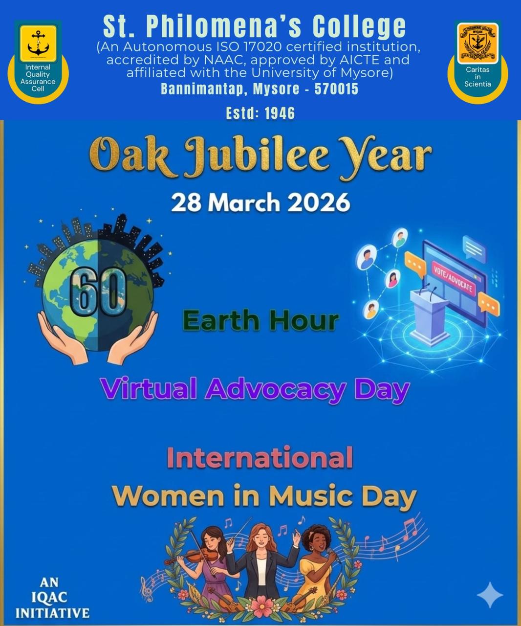 Earth Hour Posted by Mirium Categories Events, Events, Events, IQAC Date March 28, 2026 Share: Mirium Previous post PTM March 28, 2026 Next post Congratulations March 28, 2026 You may also like La Francophonie en Fete- 2026 April 1, 2026 Two Days National Conference April 1, 2026 International Fun at work day April 1, 2026