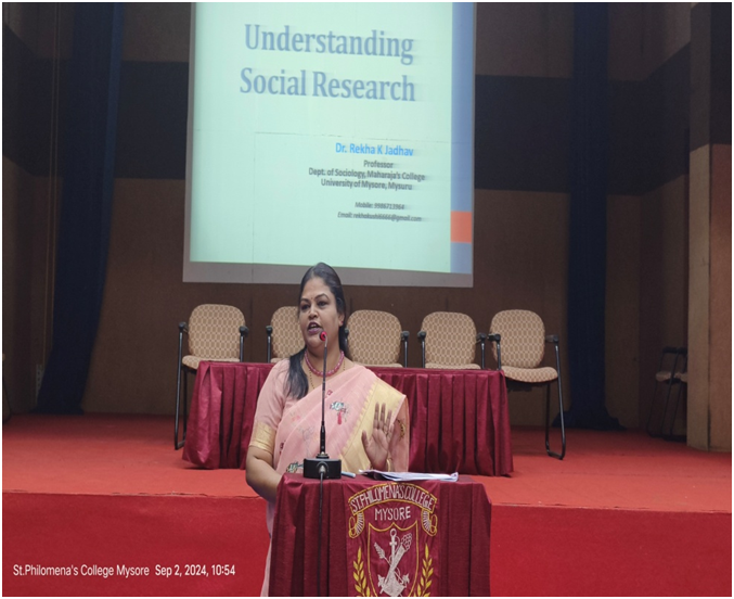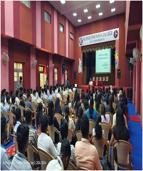 The Department of Sociology and Economics of St. Philomena’s College, Mysuru organized guest lecture on “Understanding Social Research” on 2nd September 2024 at 10:30 AM in the College Auditorium.