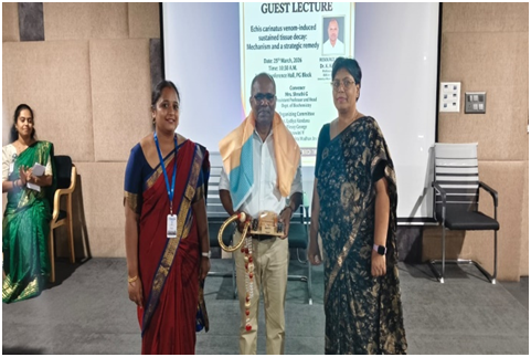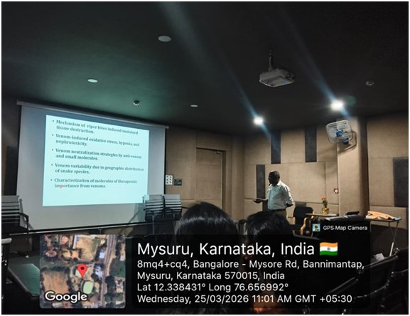 This guest lecture was organized by the Undergraduate (UG) and Post-Graduate (PG) Departments of Biochemistry on 25th March 2026. The session aimed to bridge the gap between molecular biochemistry and clinical toxicology, focusing on the localized complications of snake envenomation.