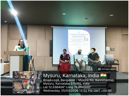The speaker for theguestlecturesession,Dr. K. Kemparaju, Professor &Chairman , DOS in Biochemistry, University of Mysuru, Manasagangotri, Mysuru,was introduced by Ms.SamyuktaMadhav Joshi,AssistantProfessor,Dept.of Biochemistry UG.
