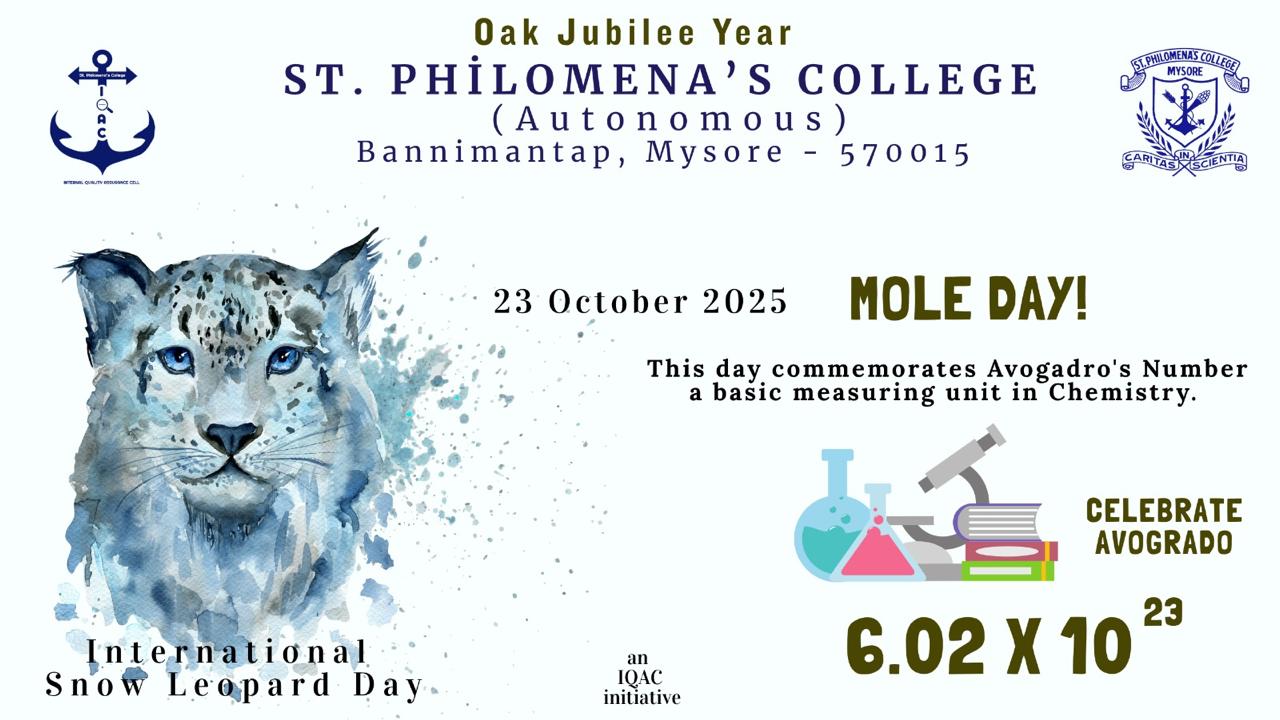 International Snow Leopard Day Posted by Mirium Categories Events, Events, Events, IQAC Date October 23, 2025 Share: Mirium Previous post International Stuttering Awareness October 23, 2025 Next post RE-REVISED UG ODD SEMESTER EXAM TIMETABLE AS ON 14-10-2025 October 23, 2025 You may also like International Stuttering Awareness October 22, 2025 Commemoration Day October 21, 2025 SMRUTI 2025 October 17, 2025