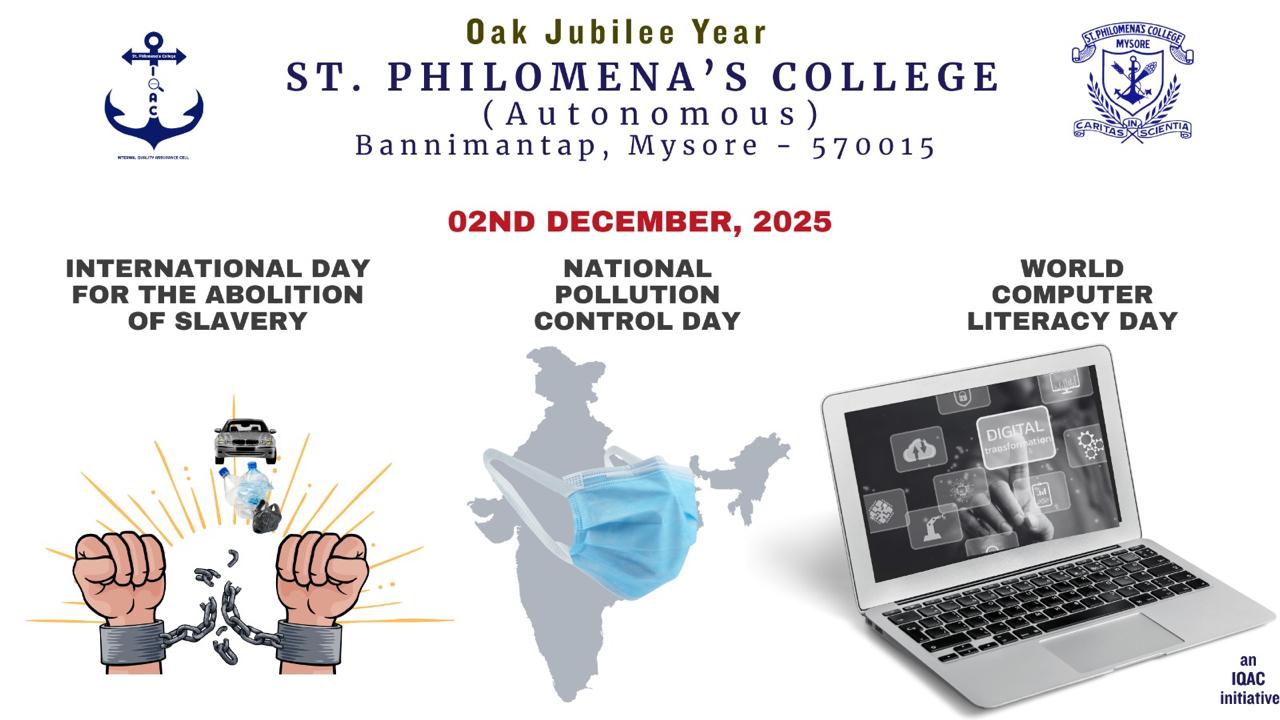 National Pollution Control Day Posted by Mirium Categories Events, Events, Events, IQAC Date December 2, 2025 Share: Mirium Previous post Workshop Report: Enteral Feeding Practical approaches December 2, 2025 Next post The final date for submissions regarding MBA/MCA revaluation and photocopy applications is December 8, 2025. December 3, 2025 You may also like National Youth Day 2025 January 12, 2026 NSS Officer and volunteersparticipated in the Kukkarahalli Lake cleanliness drive January 12, 2026 January 8, 2026