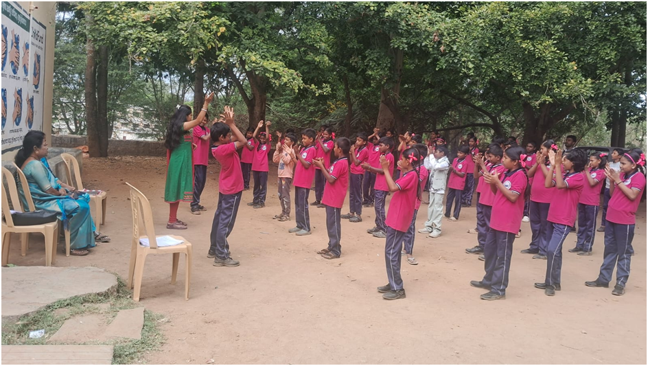 To ensure active participation and make the programme engaging, several interactive activities were conducted, including Rain Clap Rhythm, Letter Pick and Perform, Human Chain Movement, and Group Formation Games. These activities helped the students understand the concepts better while encouraging teamwork and enthusiasm.