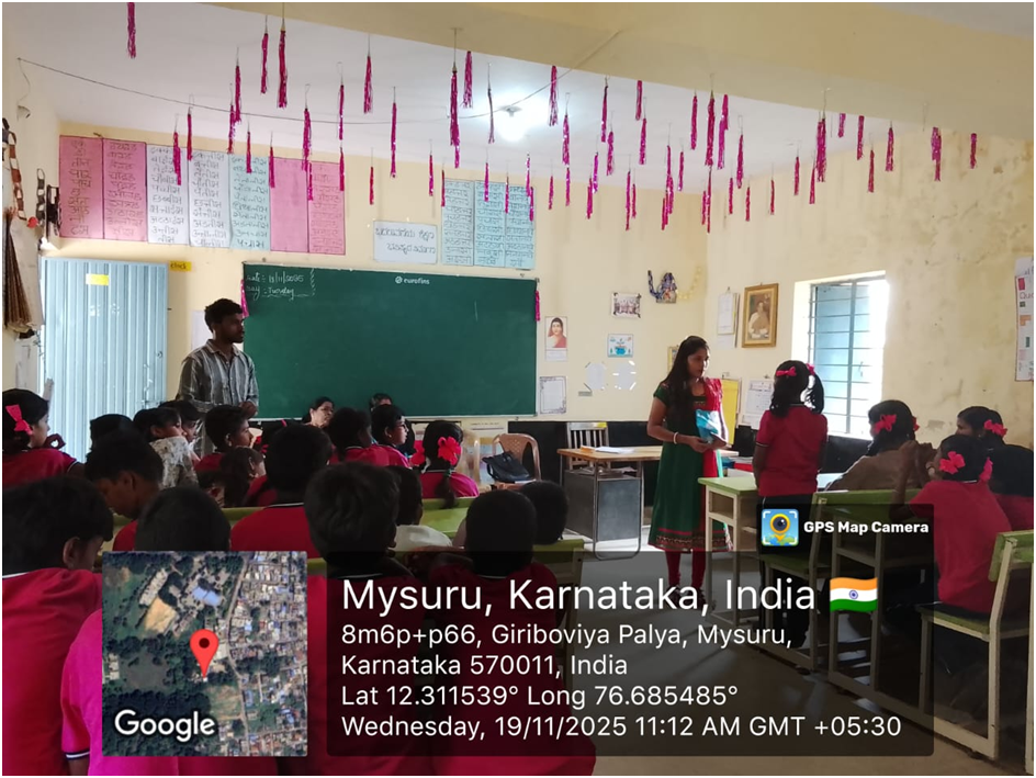 The Department of PG Studies and Research in Social Work, St. Philomena’s College (Autonomous), Mysuru, in collaboration with the Organisation of Development for People (ODP), Mysuru, organized an outreach programme on the Importance of Education and Hygiene on 19th November 2025 (Wednesday) at the Government Higher Primary School, Giriya Bhovi Palya, Mysuru. The programme was conducted with the objective of creating awareness among school children about personal hygiene practices and motivating them towards education and future academic planning.
