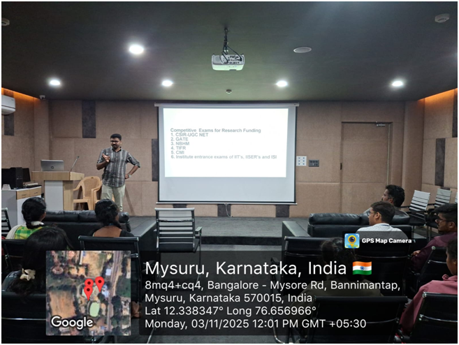 The session began with Dr. Kalarkop sharing his own story of pursuing mathematics after M.Sc., emphasizing the common dilemma: “What’s next after M.Sc.?” He recounted his initial uncertainties and how he decided to pursue a Ph.D., highlighting the passion for discovery as a driving force. This personal anecdote resonated with the audience, setting a motivational tone.
