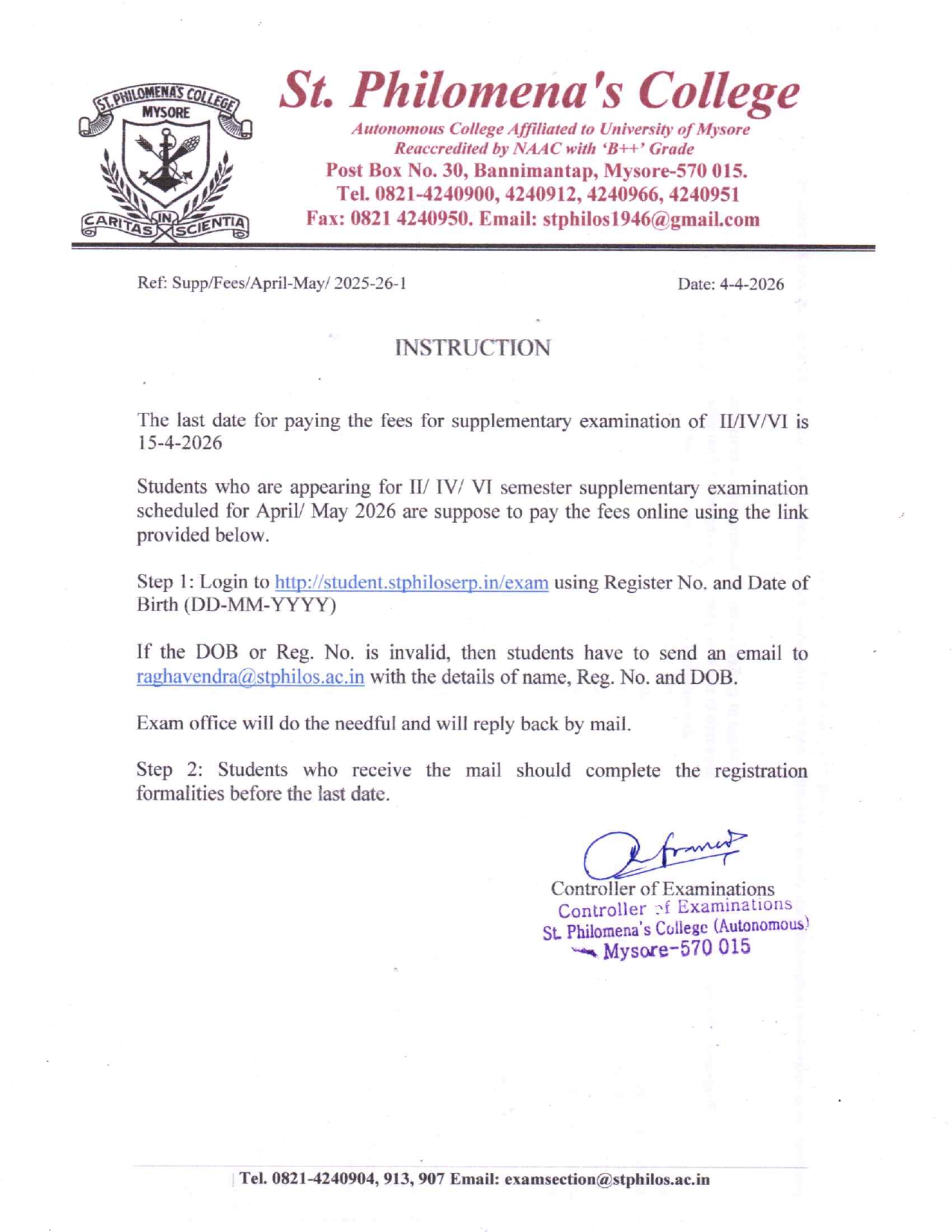 Supplementary Examination Fee Payement
