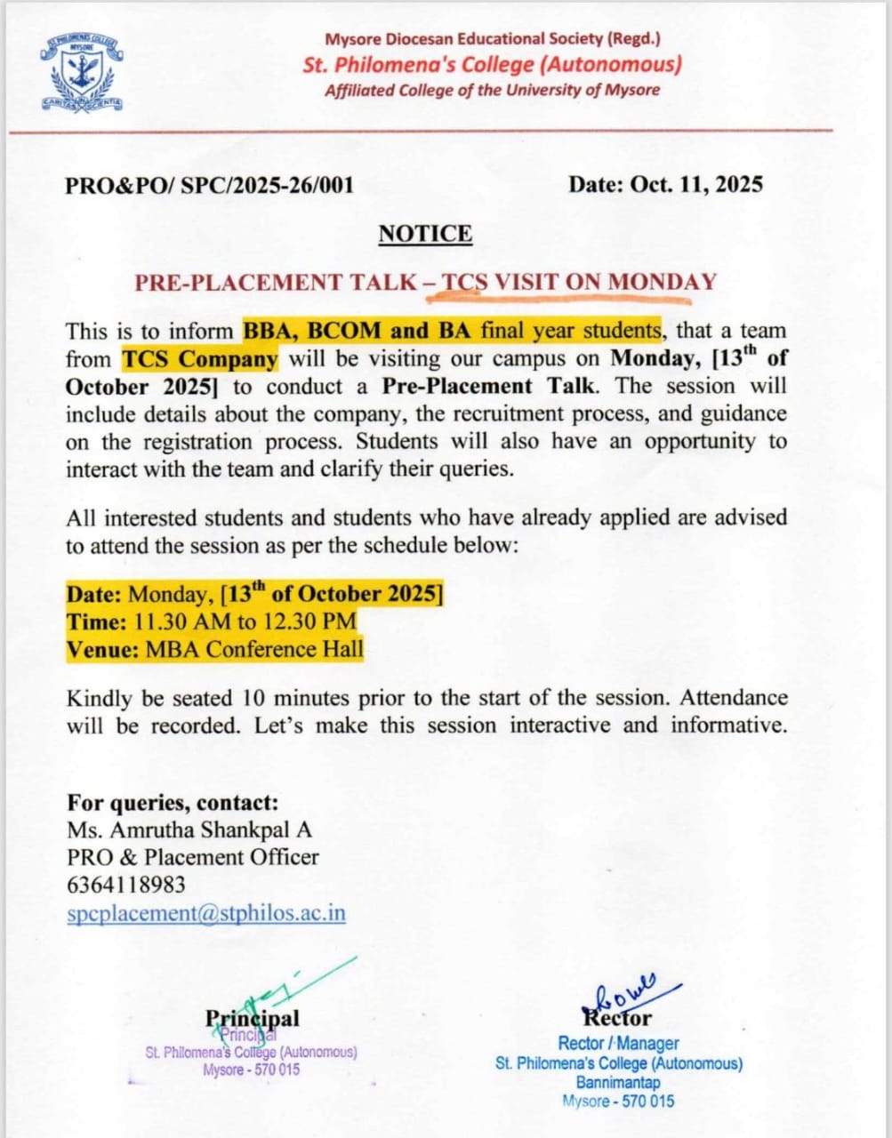 TCS Company Posted by Mirium Categories Events, Events, Events, Placement, Placements Date October 12, 2025 Share: Mirium Previous post World Arthritis Day October 12, 2025 Next post Farewell for MBA October 12, 2025 You may also like Inter Collegiate Football Tournament October 13, 2025 “ACCESS TO SERVICES” October 13, 2025 Students Achievers October 13, 2025