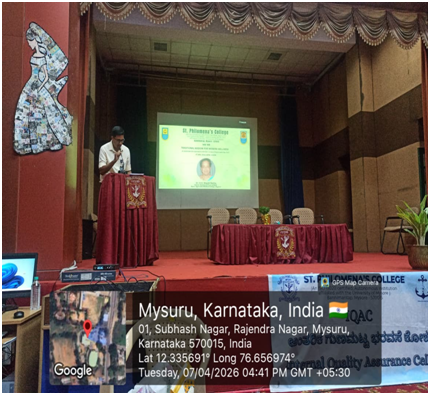 An awareness programme titled “Traditional Wisdom for Modern Wellness” was organized by the Internal Quality Assurance Cell (IQAC) of St. Philomena’s College, Bannimantap,Mysore, in observance of World Health Day 2026 on 7th April 2026 at the College Auditorium from 3:00 PM to 4:30 PM.