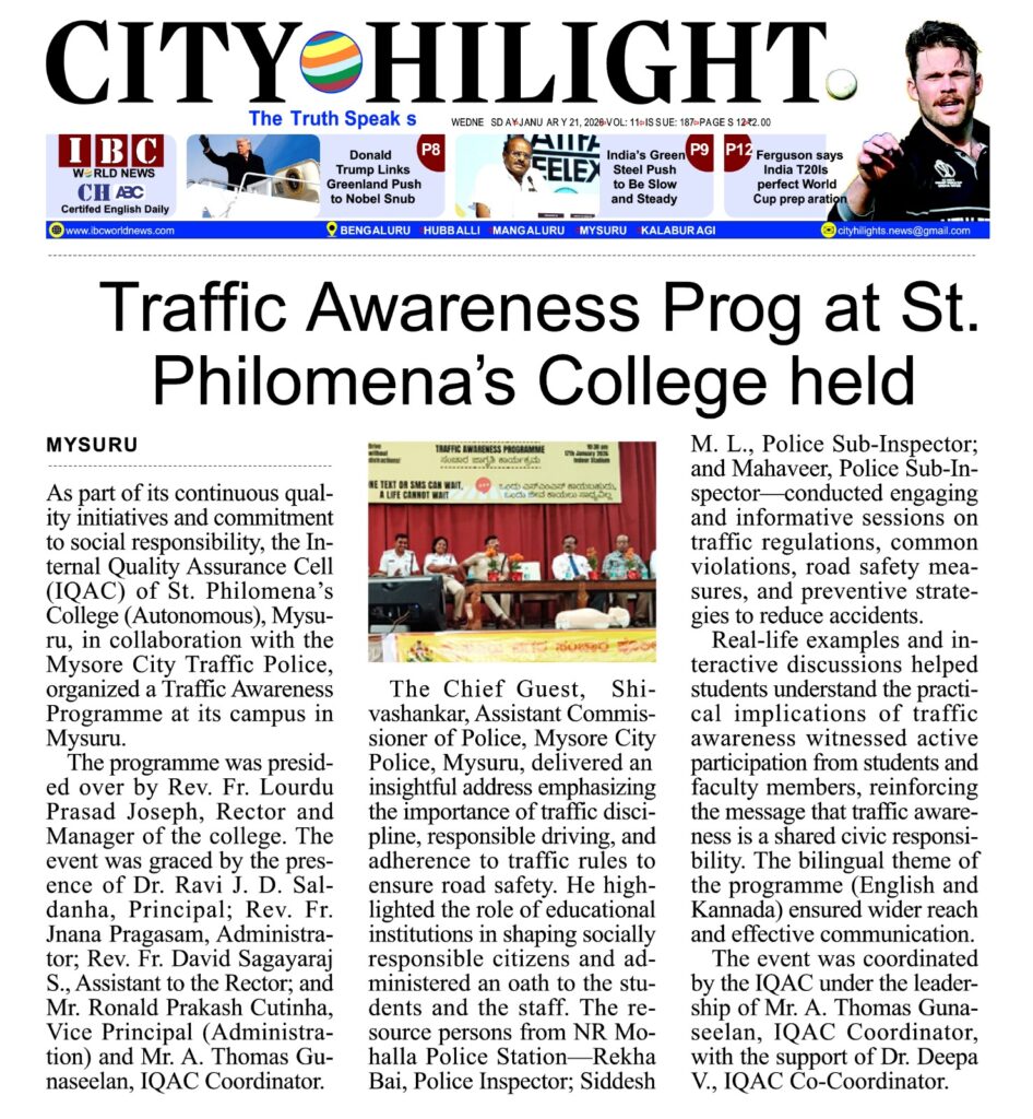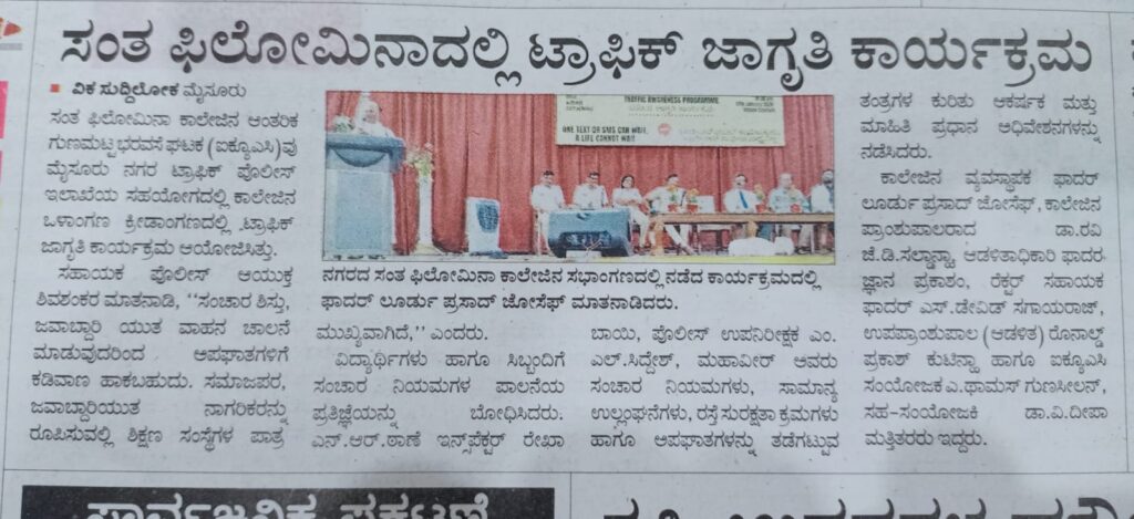 Traffic Awareness Programme Posted by Mirium Categories Events, Events, Events, Flash News, Flash News Date January 17, 2026 https://www.mysoremail.com/2026/01/blog-post_17.html?m=1 Share: Mirium Previous post Revised Time Table January 17, 2026 Next post World Snow Day January 19, 2026 You may also like UG & PG Revaluation Notice February 10, 2026 Fire Less Cooking Competition February 9, 2026 Flea Market February 9, 2026
