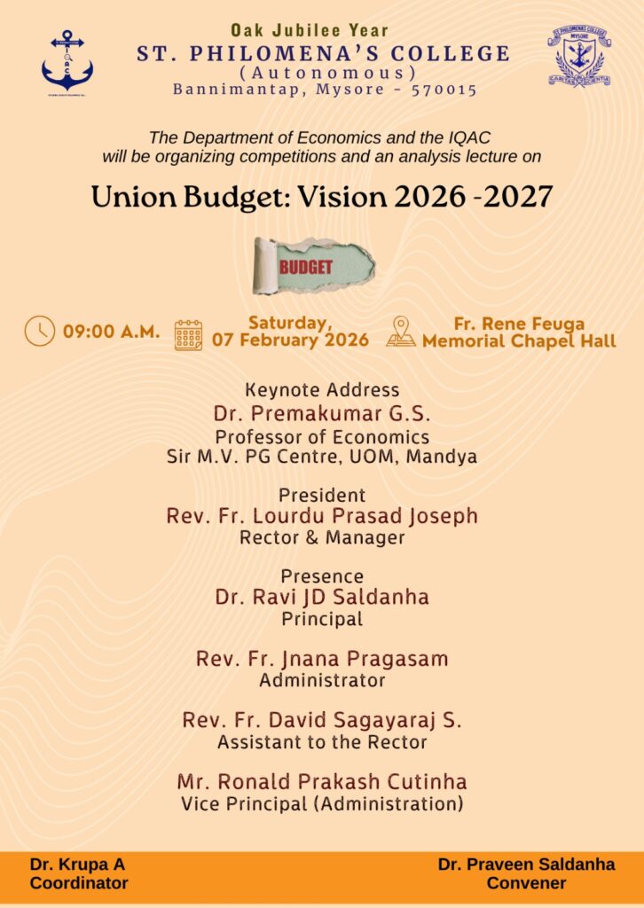 Union Budget : Vision 2026-2027 Posted by Mirium Categories IQAC, UG ECONOMICS Date February 7, 2026 Union Budget 2026 27 Driving Growth through Strategic Policy Vision 07022026Download Share: Mirium Previous post One Week National FDP February 7, 2026 Next post Happy Rose Day February 7, 2026 You may also like Police Run 2026 “My Police My Pride” February 25, 2026 World Sustainable Energy Days February 25, 2026 INCREDEMA 2026 February 25, 2026