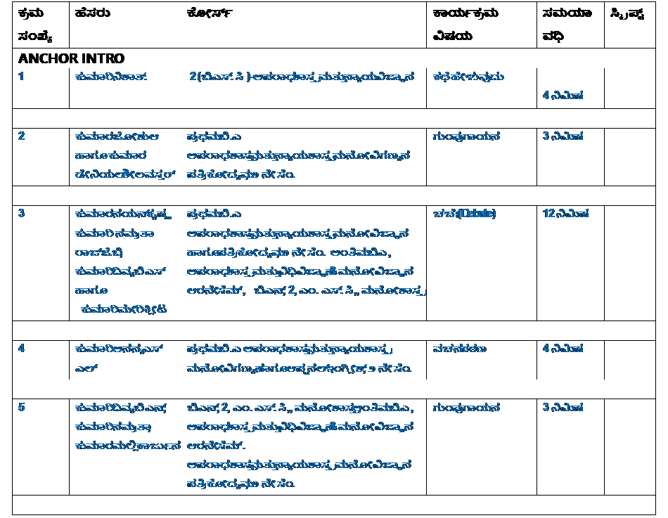 The programme was successfully conducted with the support and guidance of the Akashvani team. Mr. Digvijaya, Programme Director, played a key role in organizing and supervising the smooth execution of the programme. Ms. Tejaswini guided the students with clear instructions regarding studio rules and boosted their confidence before the recording began. Ms. Keerthanaalso supported the team throughout the session and ensured proper coordination.