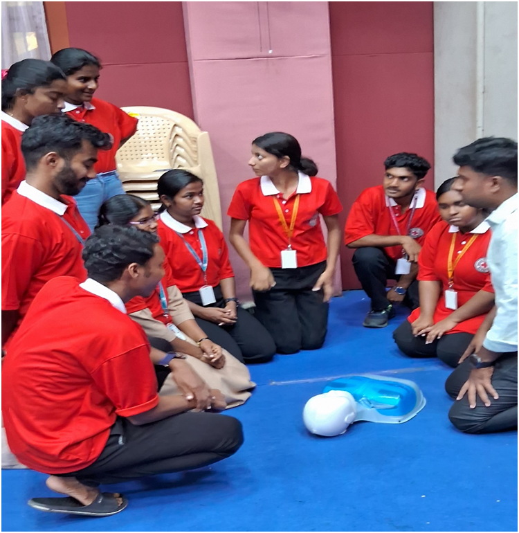 The Youth Red Cross Unit of St. Philomena’s College (Autonomous), Mysore organized a CPR Hands-on Training Program titled “You Can be a Life Saver: CPR – A Hands-on Training” on 16 October 2025 at 2:00 pm in the College Auditorium. The Cauvery Heart & Multi-Speciality Hospital, Mysore, and the Indian Society of Anaesthesiologists (ISA), Mysore Chapter collaboratively conducted the program, in association with the Institution’s Innovation Council (IIC), IQAC, NCC, NSS, Sports Committee, and Rovers & Rangers of the college.
